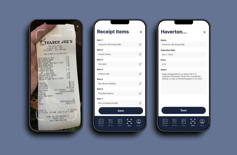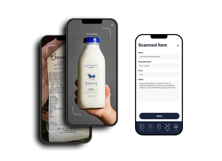 Scan grocery receipts, track expiration dates, and discover AI-powered recipes from what’s already in your kitchen.