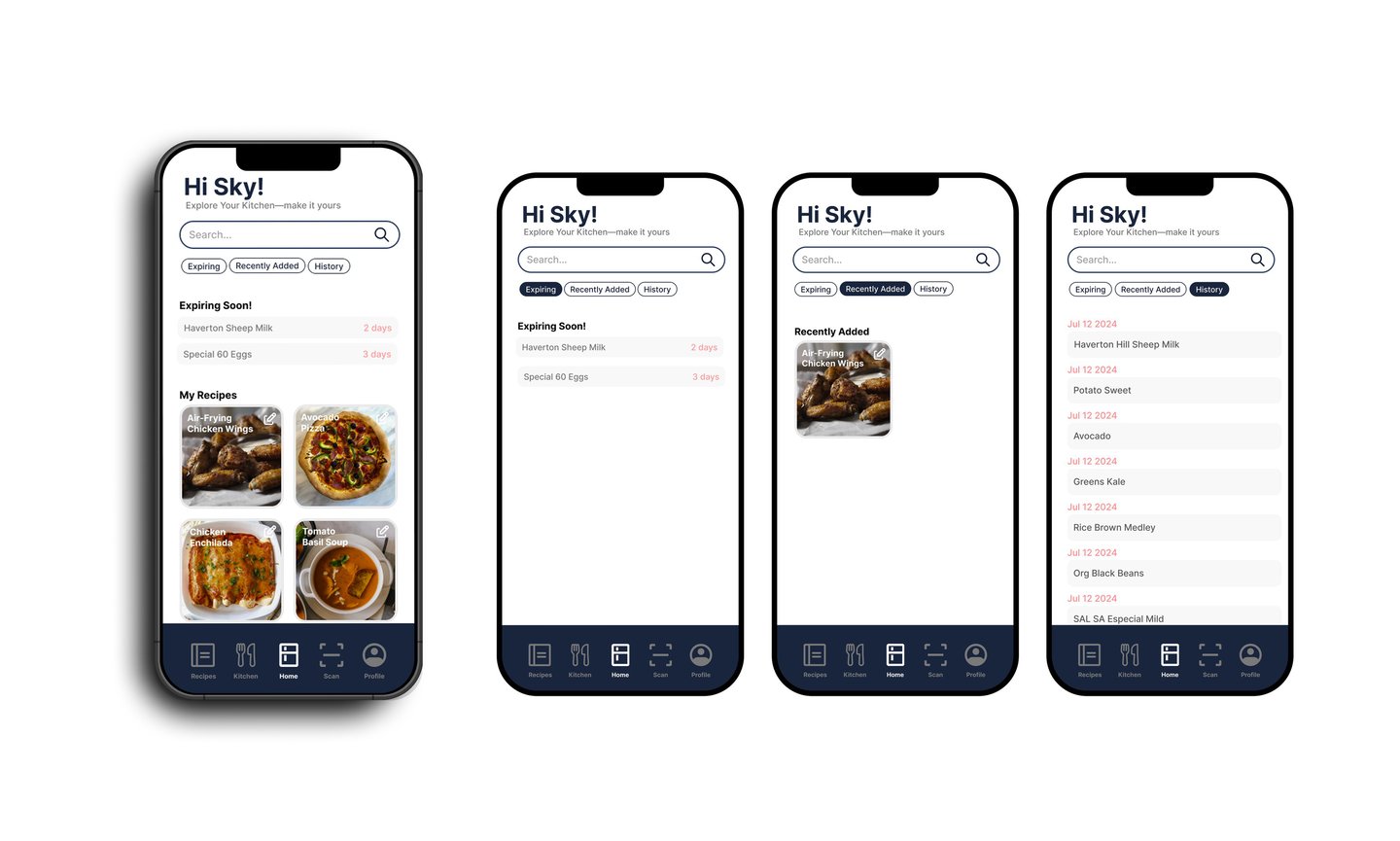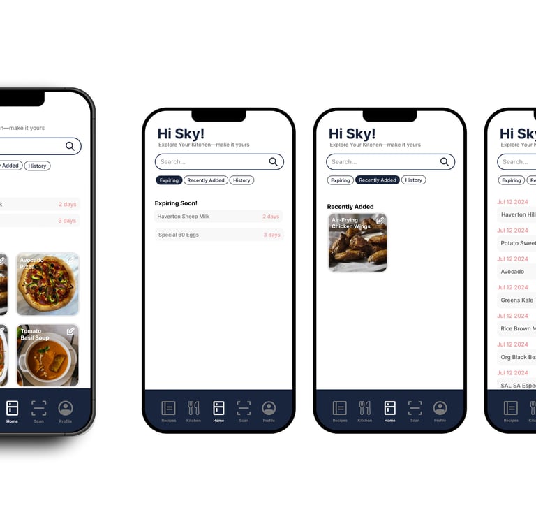 The project focused on redesigning how users track what they own, what’s expiring, and how to use ingredients before they go to waste.