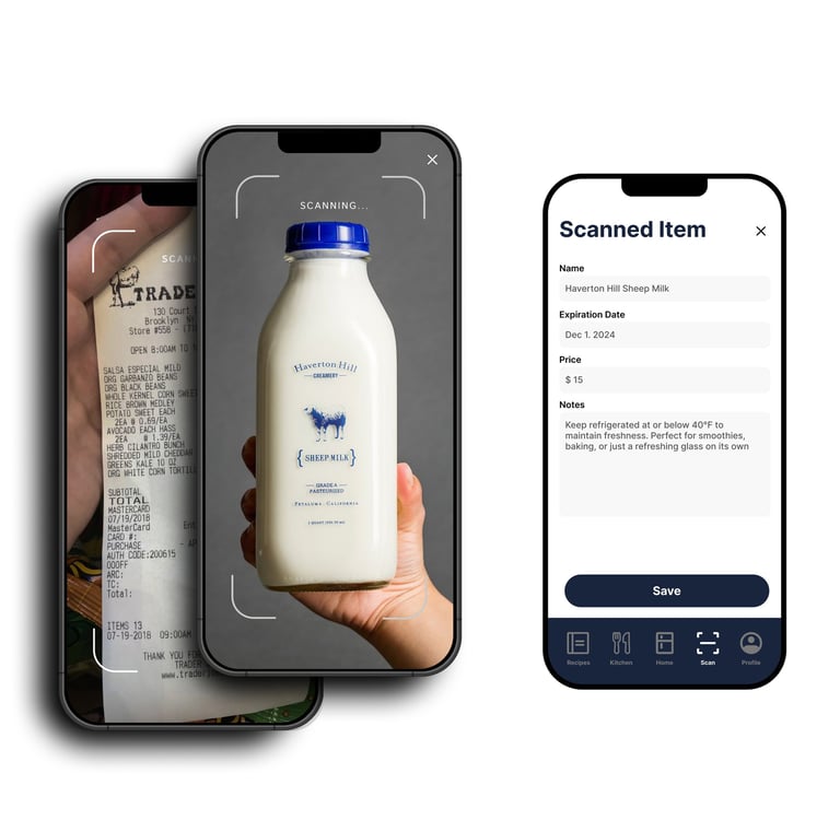 Users can scan a receipt or barcode, review detected items, and make quick edits before saving—building trust in automation while keeping users in control.