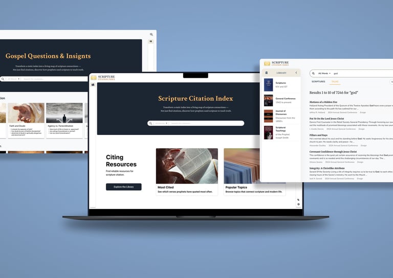 Scripture Citation Index helps students, researchers, and Church members quickly find where scriptures are cited across sermons, talks, and historical religious teachings. A redesigned, search-first experience reduces time spent navigating fragmented sources and supports deeper, more focused study.