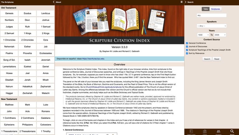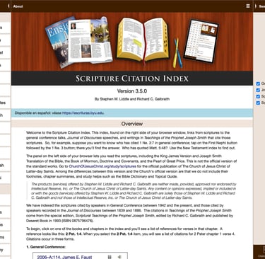 Scripture Citation Index is a research tool that helps users quickly find where scriptures are referenced across historical talks and religious writings.